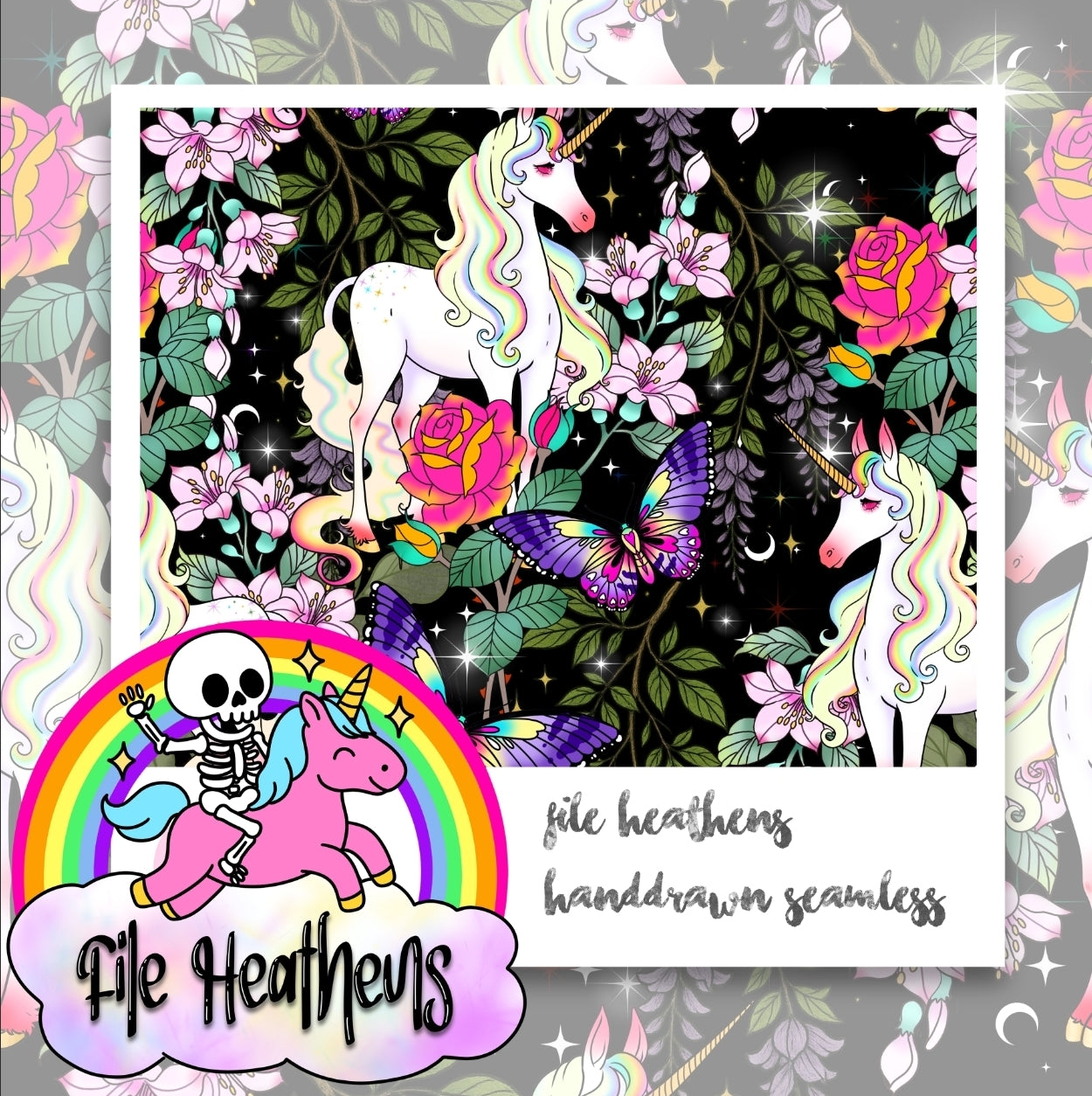 Black Unicorn Botanicam Gardens Handdrawn Seamless File