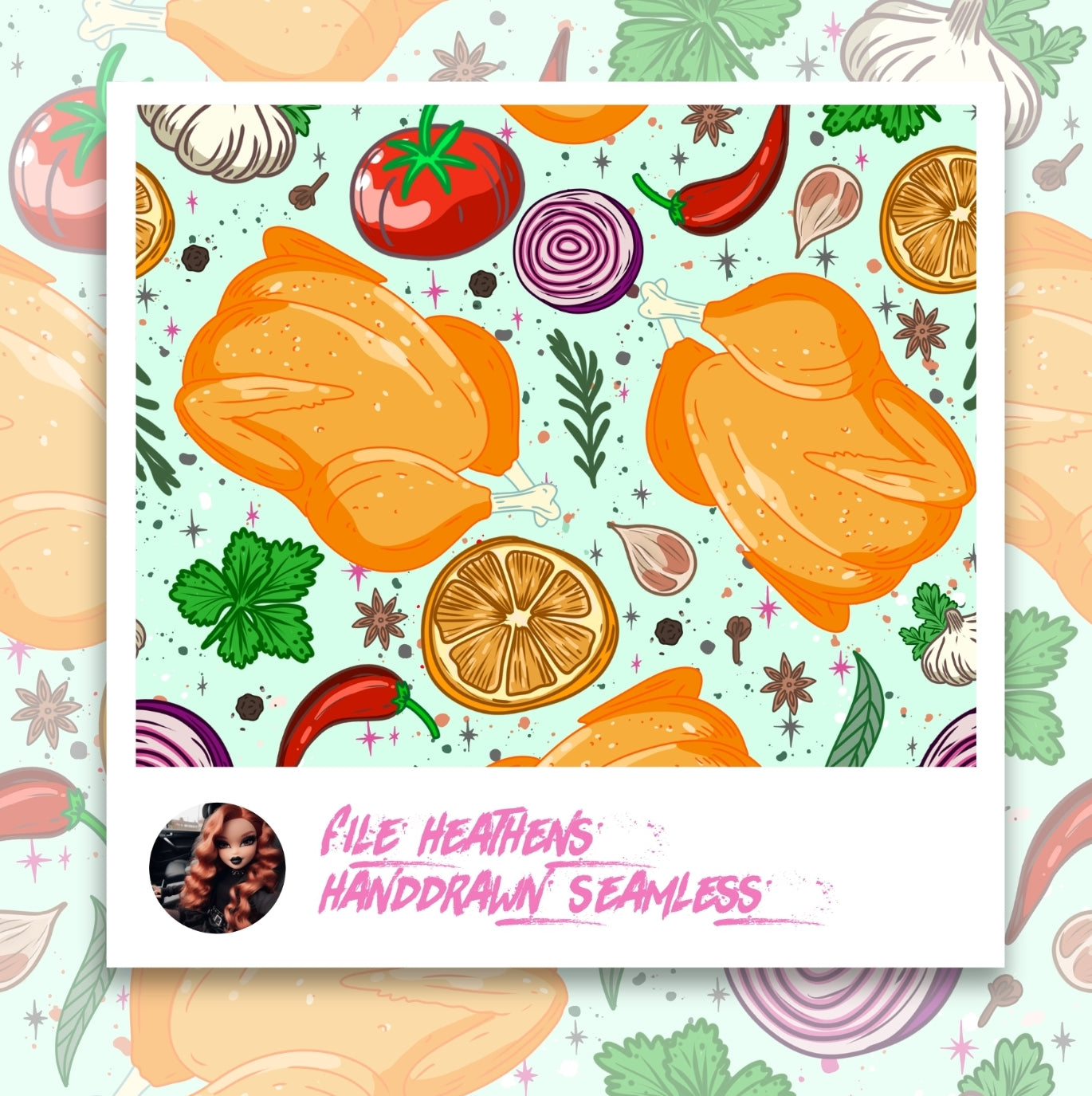 Chicken Let Her Cook Handdrawn Seamless File