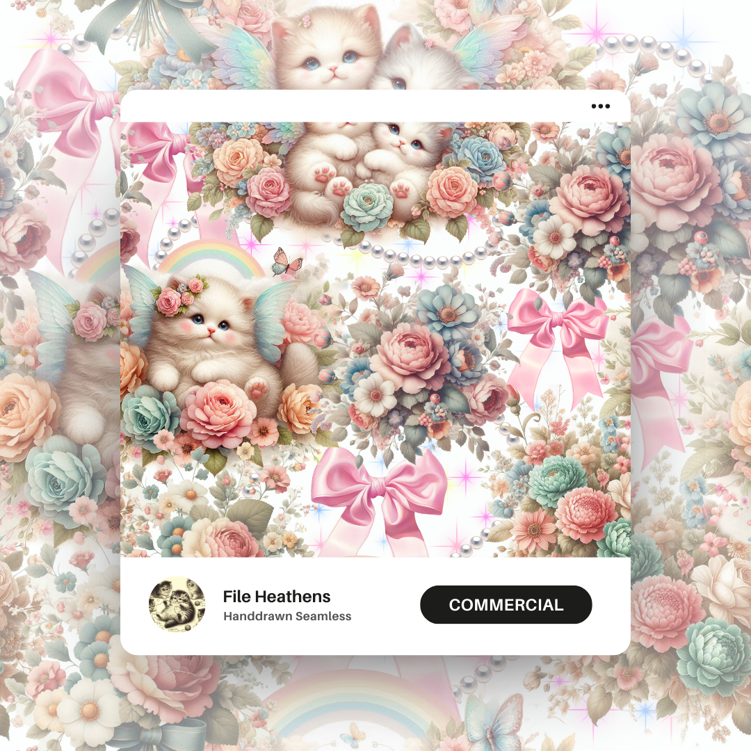 Coquette Fairy Kittens Oil Painting - Seamless File
