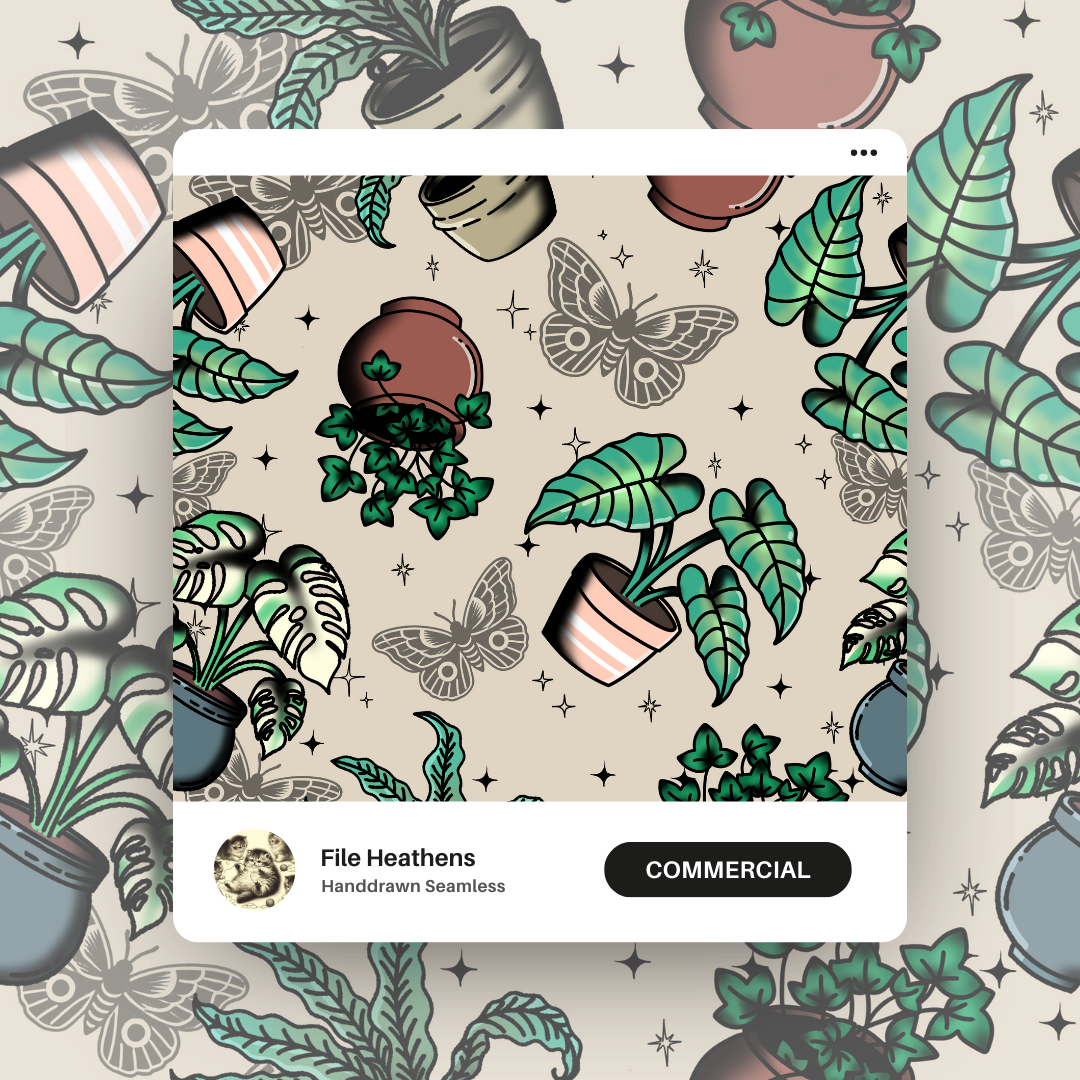House Plant Obsession Tattoo Flash Handdrawn Seamless File