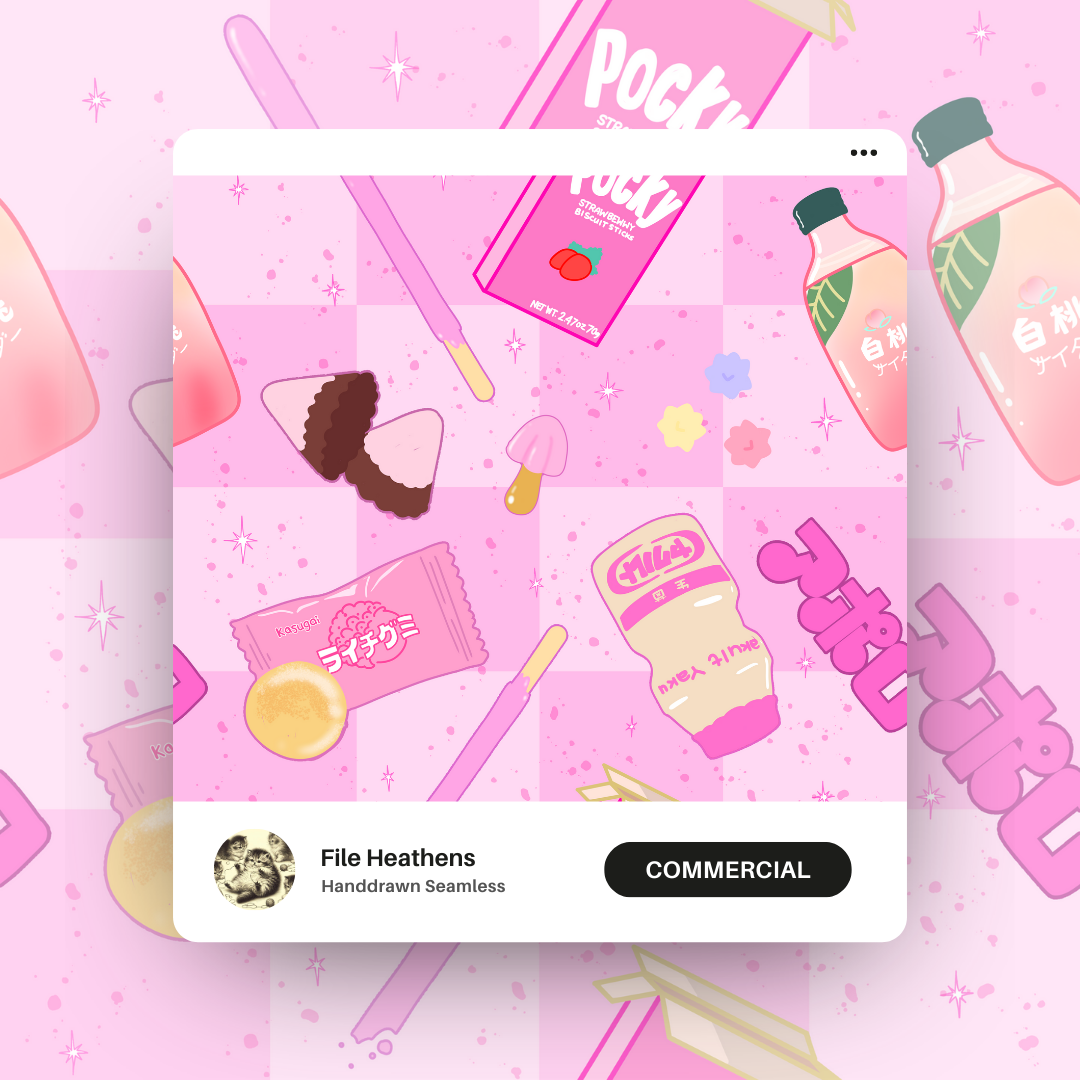 Japanese Pink Snacks 日本のピンクスナック Handdrawn Seamless File