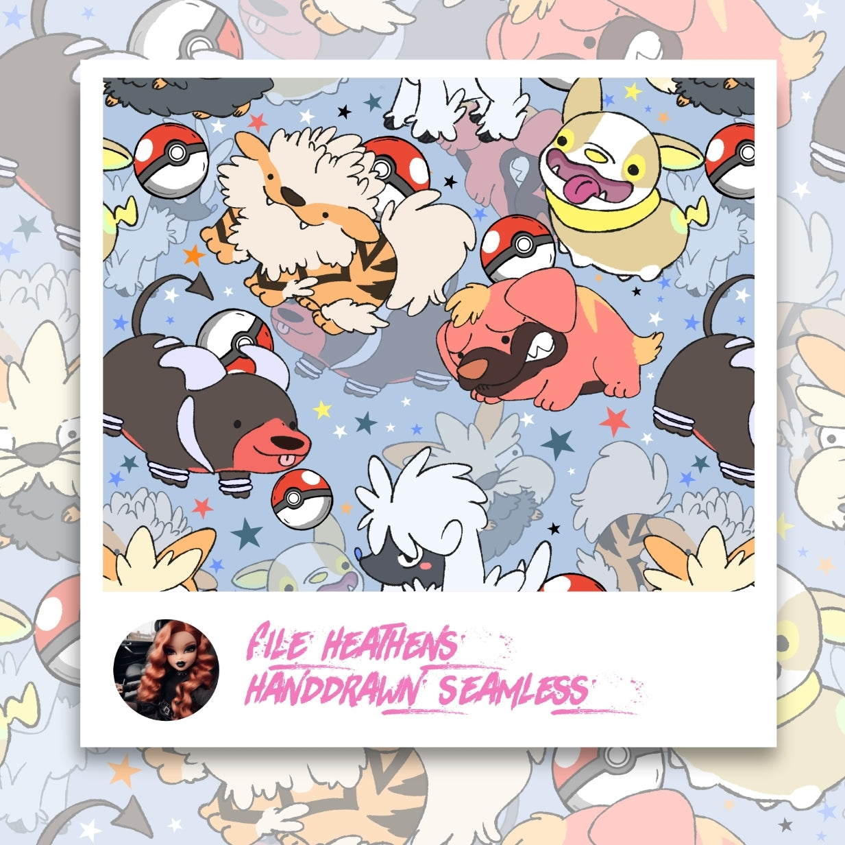 PokePuppies Pocket Monsters Pokemon Handdrawn Seamless