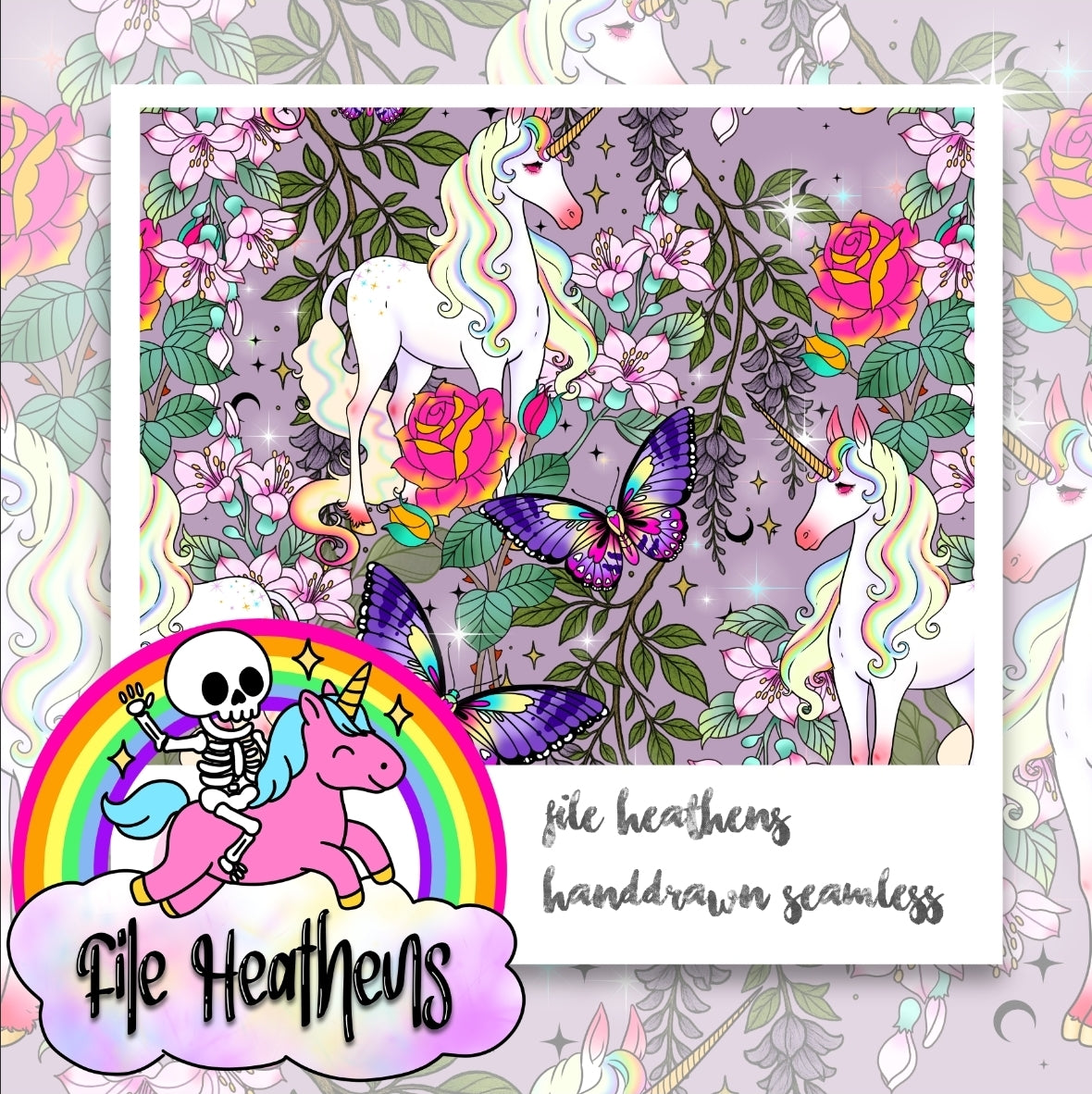 Purple Unicorn Botanicam Gardens Handdrawn Seamless File