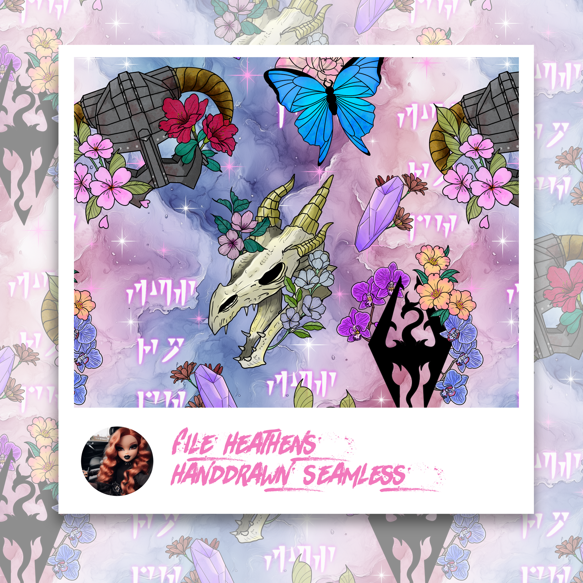 Skyrim Dragonborn Tattoo Flash Handdrawn Seamless File