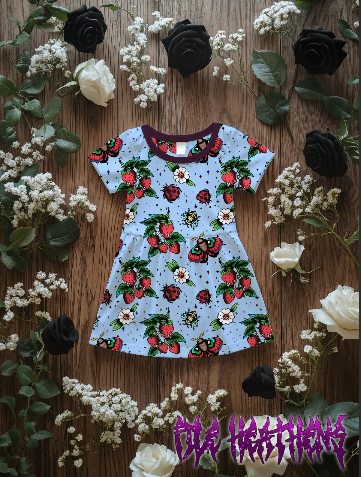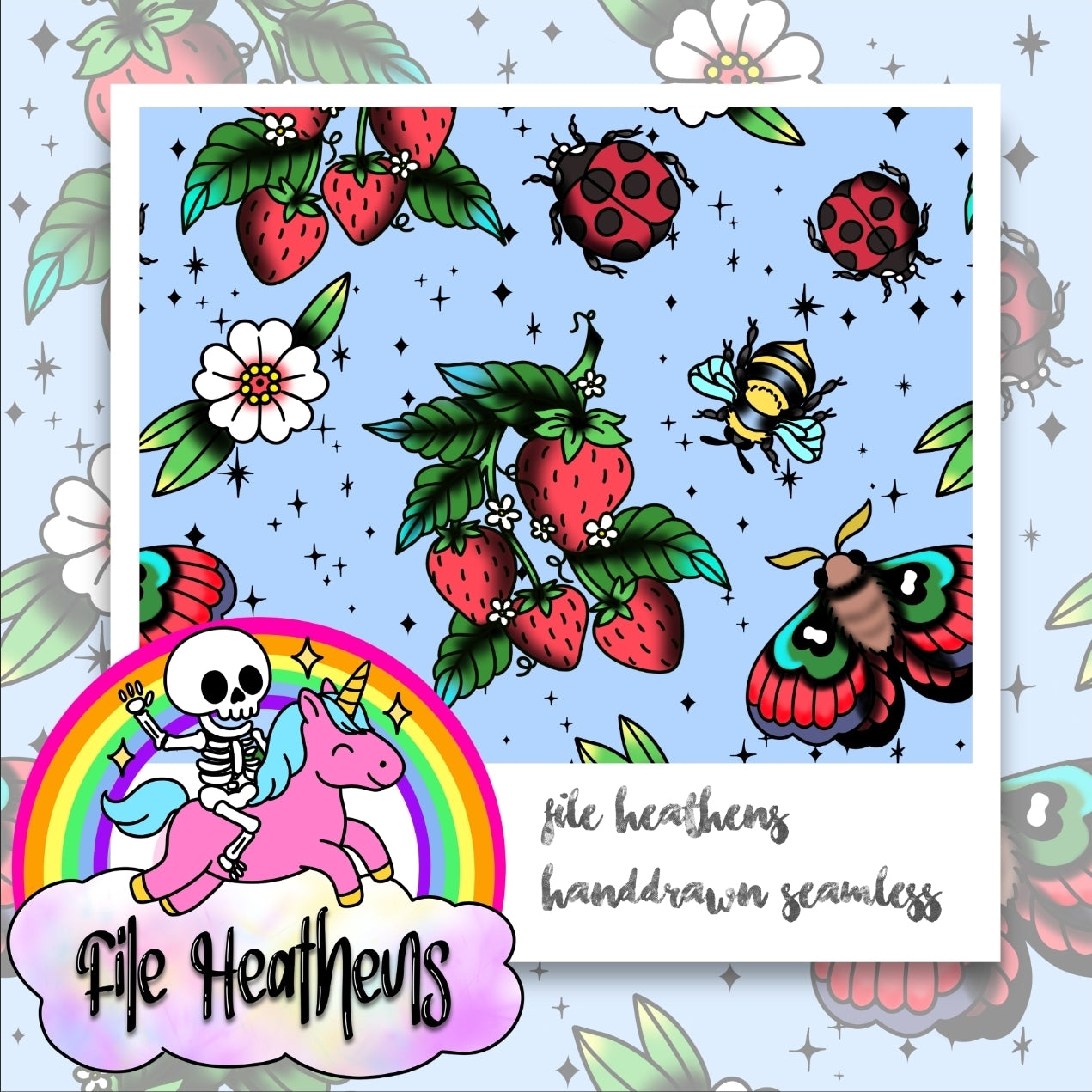 Strawberries and Bugs Tattoo Flash Handdrawn seamless file